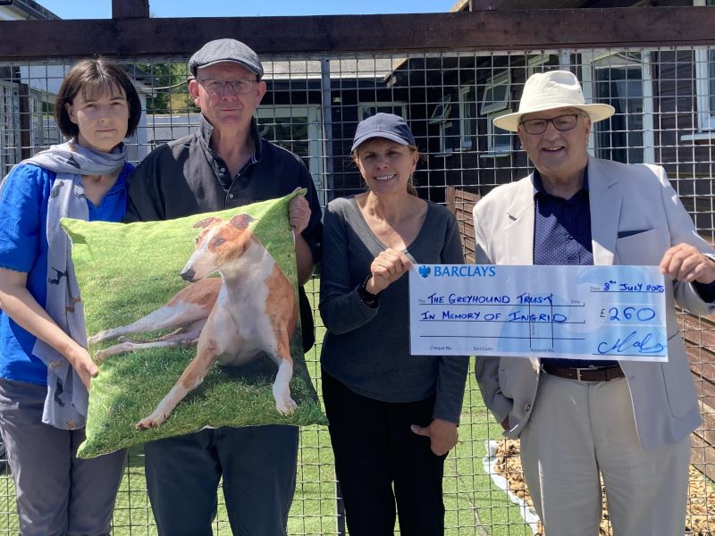 Donations to the Greyhound Trust in memory of Ingrid continue to be received and £410 has so far been donated.